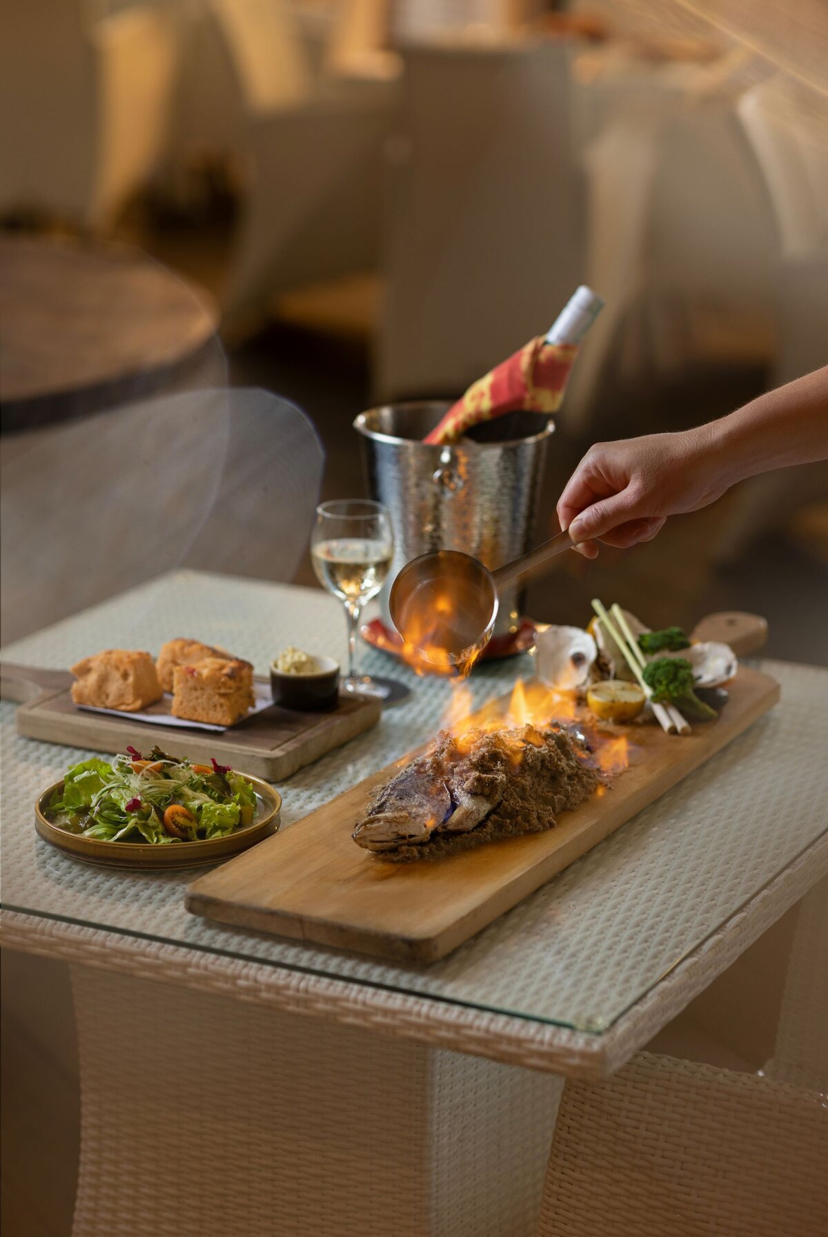 By day, Splash Bistro captures the essence of poolside relaxation, offering delicious lunches and refreshing drinks. But as the sun sets and the night comes alive, Splash Bistro undergoes a magical transformation to become Splash on Fire. an exciting new dining experience that takes guests on a culinary journey through the vibrant flavours of Japan and the Mediterranean.