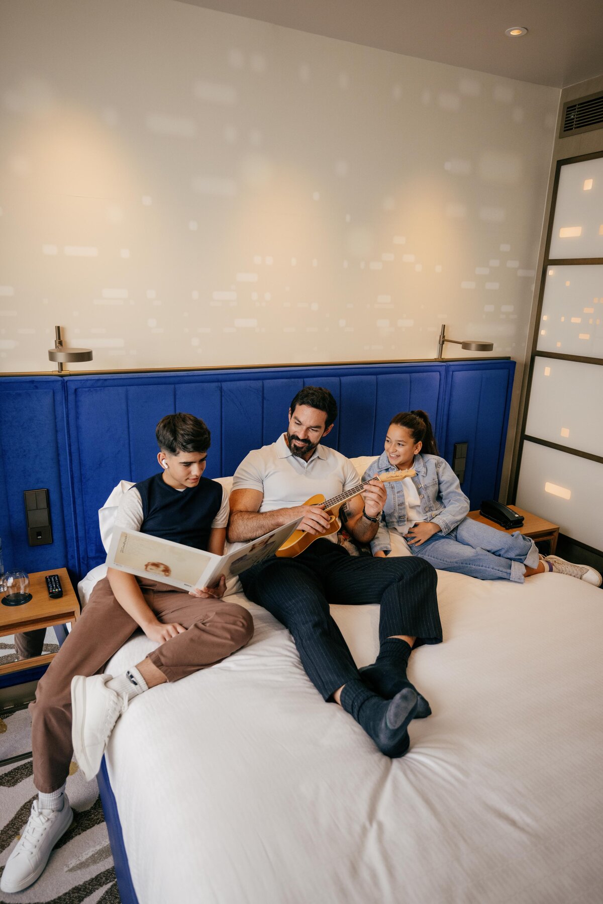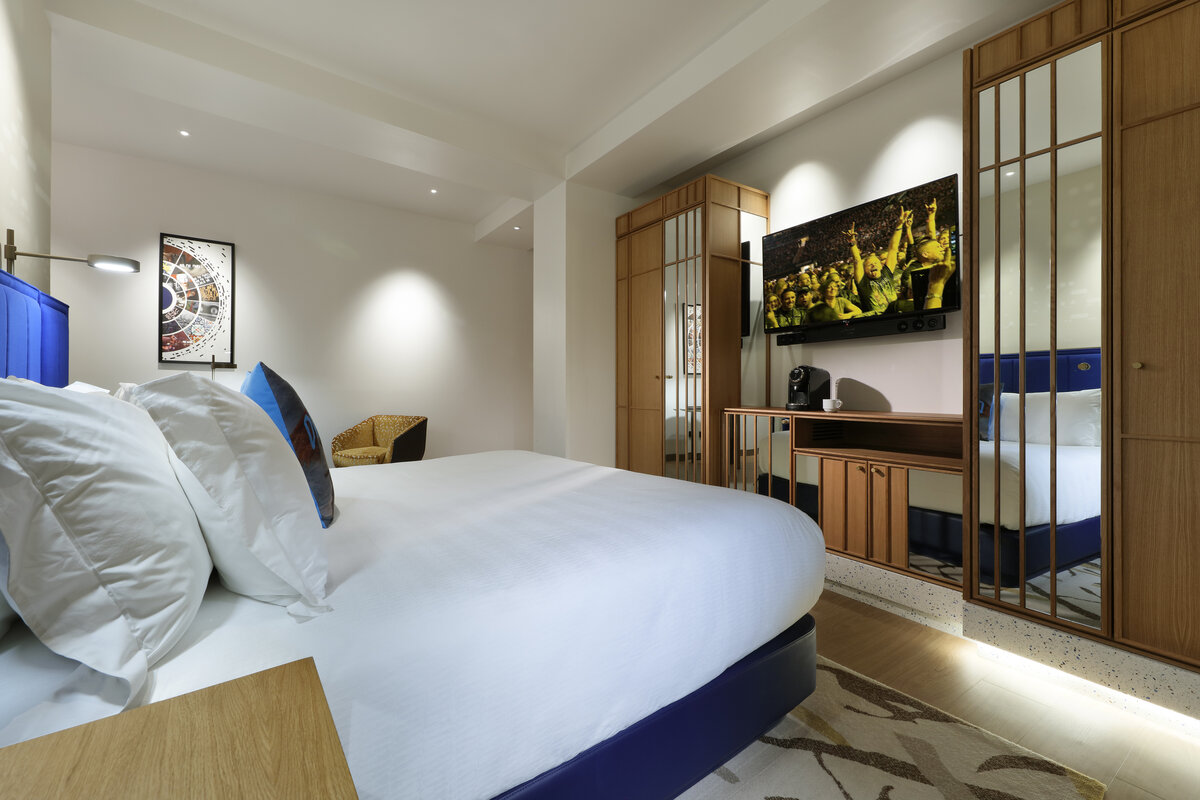 “Lo has conseguido”, te lo dice nuestra Rock Star Suite. Cada obra de arte, decoración y mobiliario de esta atrevida habitación rebosa estilo y elegancia. Vuelve de una noche de fiesta y relájate en la bañera con música de nuestros canales gratuitos.