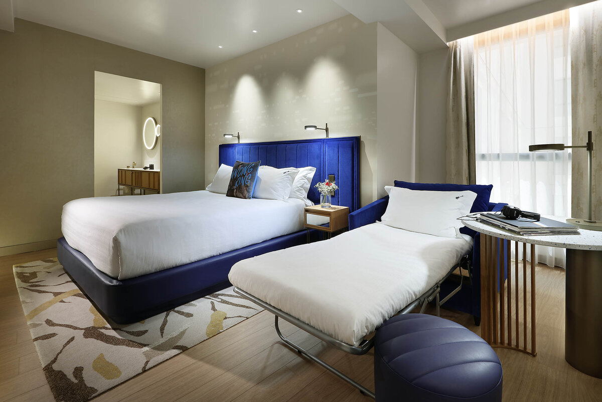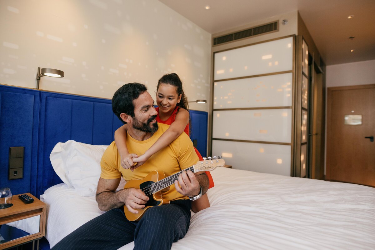 ¡Mejor juntos! Dale al play para comenzar tu próxima aventura en familia en nuestra Deluxe Family Room. Duerme como una estrella en una cama King-size + sofá cama adicional.