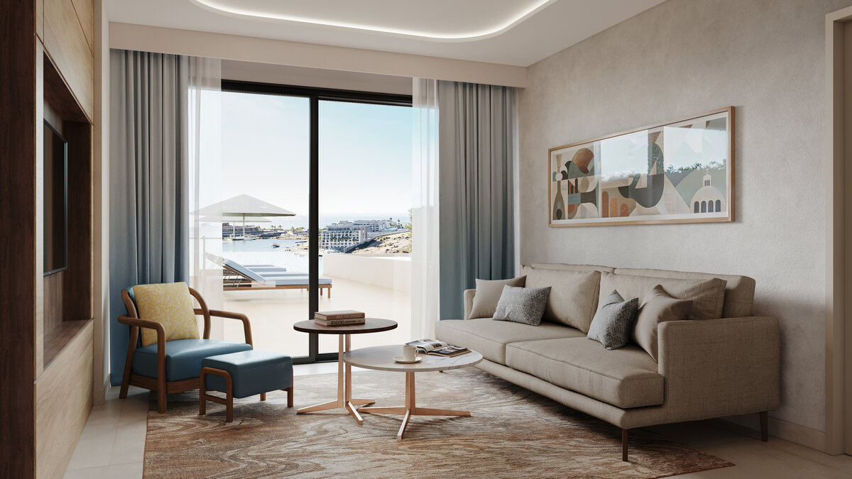 Take the lead in our Rock Suites, designed for guests who like to travel big and settle into the moment at their own pace. Expansive interiors flow easily into outdoor living, with a private pool and oversized terrace overlooking the Mediterranean for sun filled mornings, relaxed afternoons, and unforgettable sunsets. Inside, a refined living area and kitchenette create a comfortable, residential feel, perfect for entertaining or unwinding. Club floor options add premium services that elevate every detail, making Rock Suites a confident, indulgent expression of elevated island living.