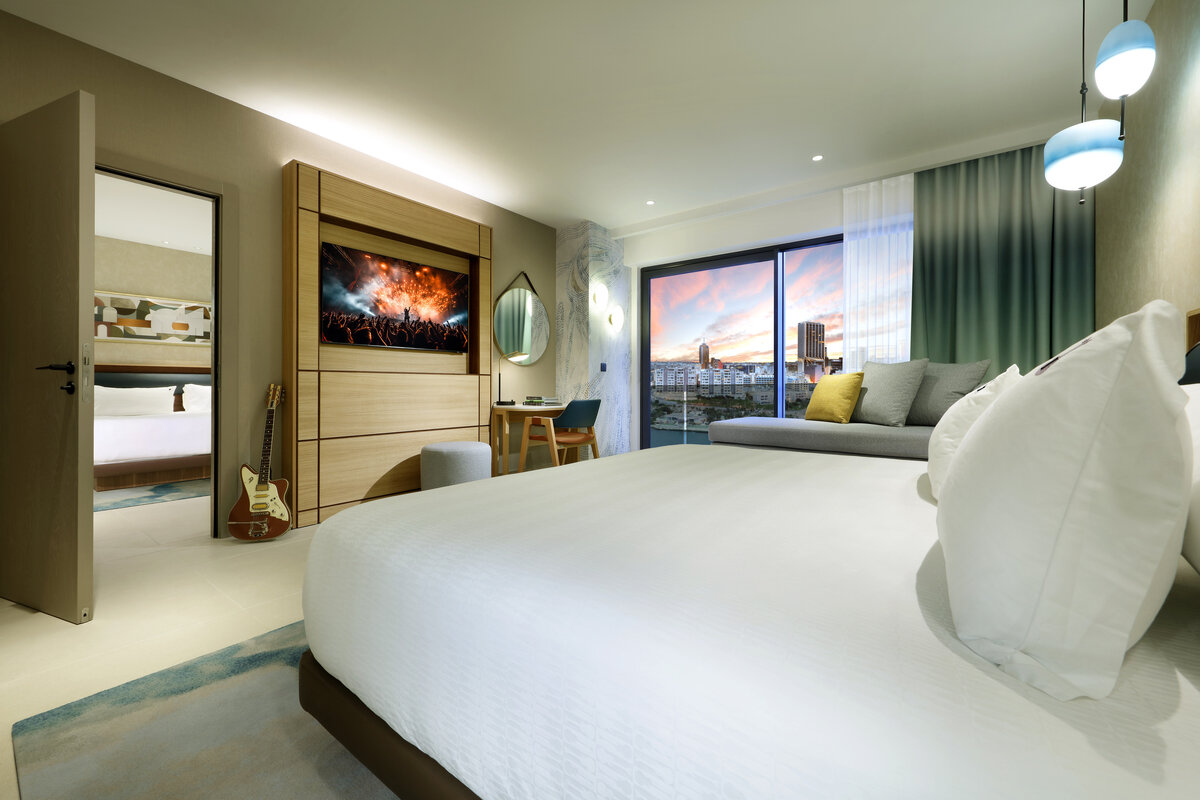 Hard Rock Hotel Malta boasts an iconic collection of rooms and suites, all set along the dazzling coastline of St. George’s Bay. Offering panoramic sea views, private balconies, and music-themed design for a stay that blends lifestyle with leisure. From spacious guestrooms to VIP suites with private heated pools and jetted tubs, you’ll find a retreat to match your rhythm. Explore elevated amenities, exclusive club access, and remarkable experiences in the island’s most dynamic destination.